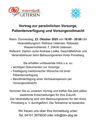 Vortrag zur persönlichen Vorsorge, Patientenverfügung und Vorsorgevollmacht