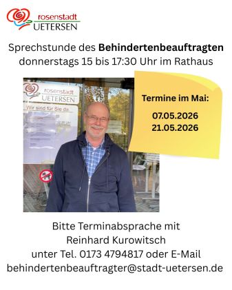 Bei Rückfragen zu den Beratungen im Rathaus wenden Sie sich bitte an: Dr. Mario Neukirch von der Stadtverwaltung Uetersen unter E-Mail: neukirch@stadt-uetersen.de oder Tel: 04122 / 714-377.