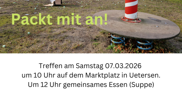 Am Sonnabend, den 07. März 2026, heißt es wieder: Ärmel hochkrempeln und gemeinsam anpacken! Die Stadt Uetersen beteiligt sich erneut an der landesweiten Aktion „Unser sauberes Schleswig-Holstein“ und lädt alle Bürger*innen herzlich zur großen Frühjahrsputz-Aktion „Unser sauberes Uetersen“ ein.